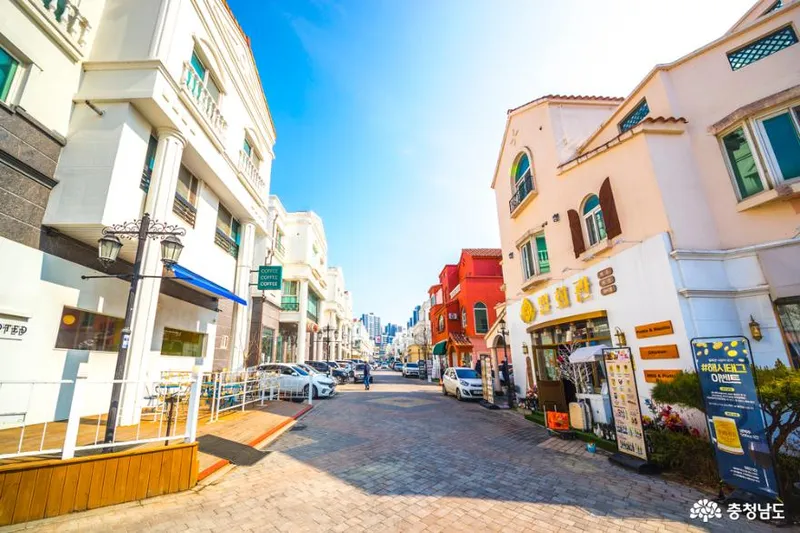 충청도 가볼만한곳 베스트 10의 여덟 번째는 아산 지중해마을이라고 합니다. 푸른 지붕과 하얀 벽으로 꾸며진 이곳은 마치 유럽의 작은 마을에 온 것처럼 이국적인 상황를 자아냅니다. 사진 찍기 즐기는 사람들에게는 인생 샷 명소로 딱이죠!