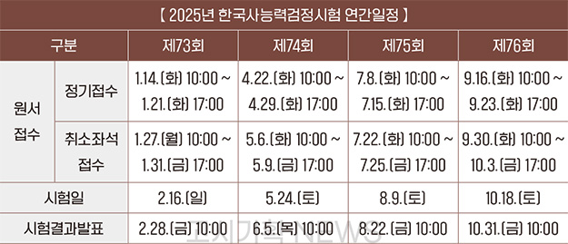 2025년 제76회 한국사 능력검정시험은 10월 18일(토) 10시에 실시됩니다. 원서접수 기간을 잘 확인해야 해요!