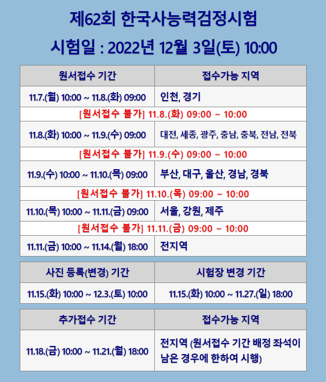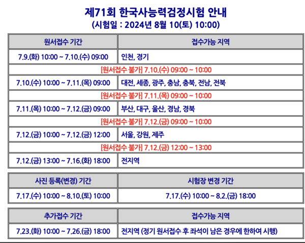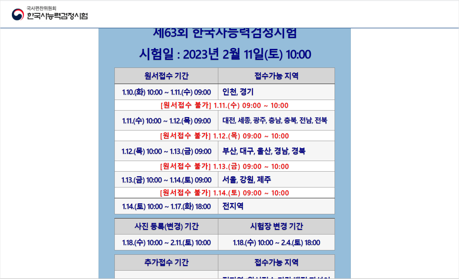 - 접수처: 한국사능력검정시험 공식 홈페이지 (PC, 모바일 모두 가능)