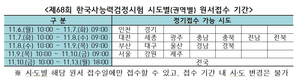 - 시험장 변경: 9월 24일(수) 10:00 ~ 10월 10일(금) 17:00