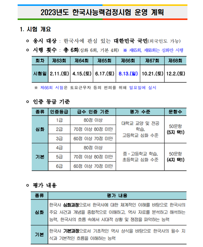 한국사 능력검정시험 등급 및 합격 기준 📝
