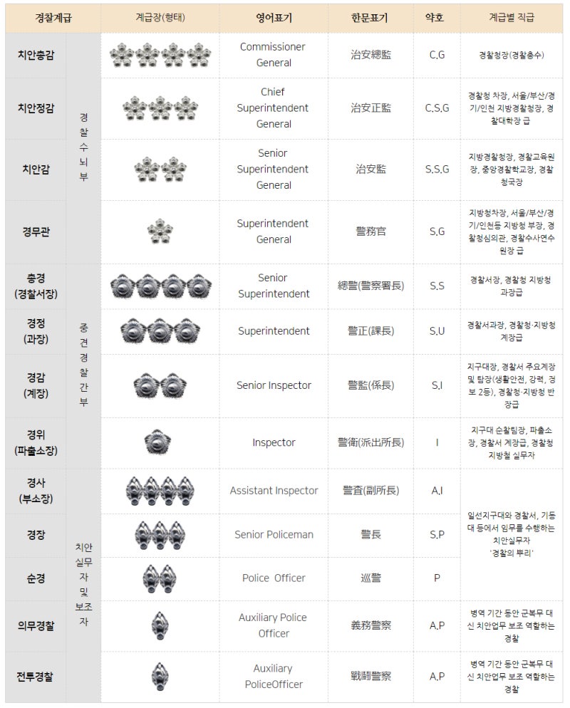 한눈에 보는 경찰 계급체계: 명칭과 서열