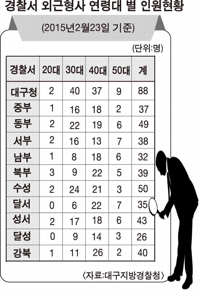 경찰 조직 내 다양한 계급의 인원 분포를 보여주는 이미지
