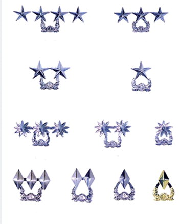 경찰 계급의 명칭과 서열을 시각적으로 보여주는 견장들