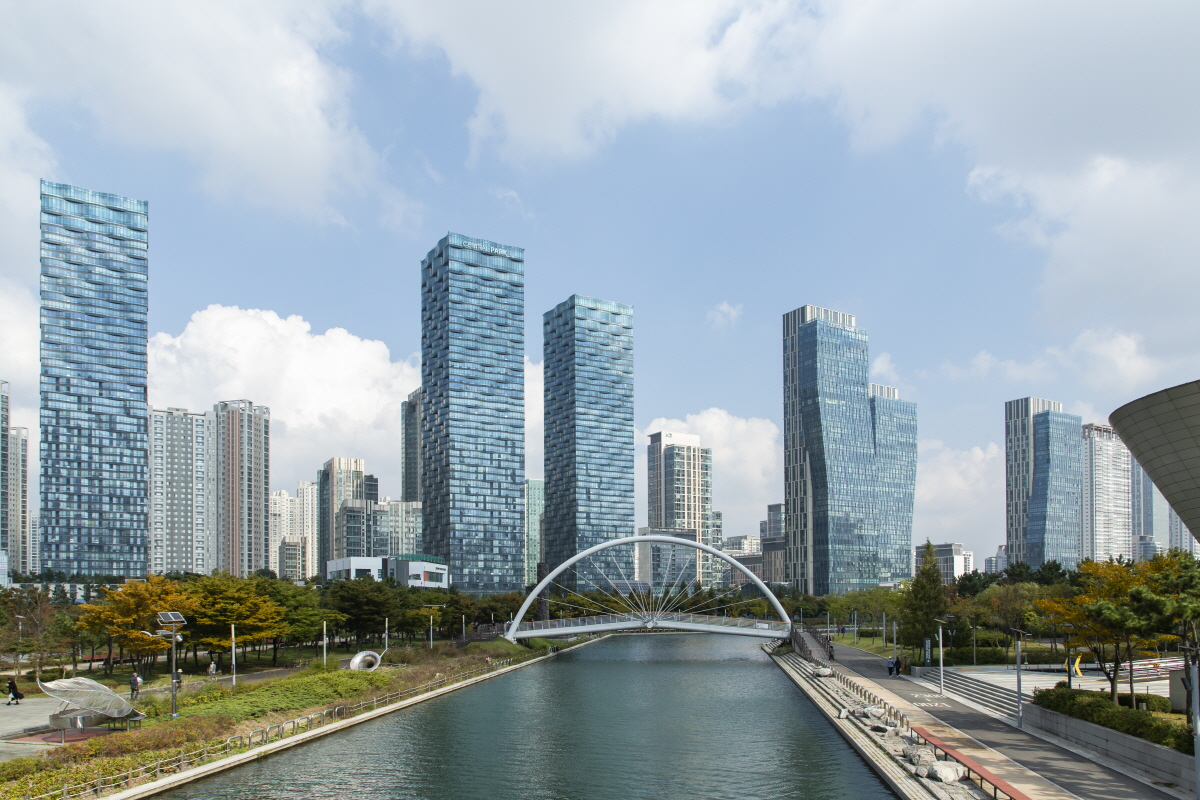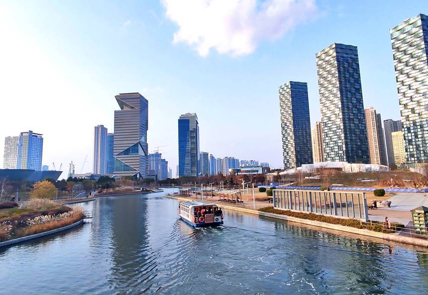 송도 센트럴파크의 아름다운 빌딩 숲과 해수로