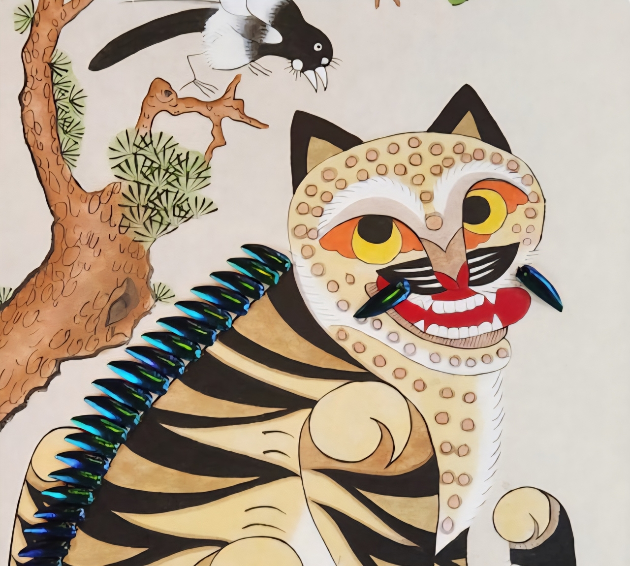 - 까치를 얹은 귀여운 호랑이: 전통 호작도를 현대적으로 재해석한 핵심 디자인이에요.