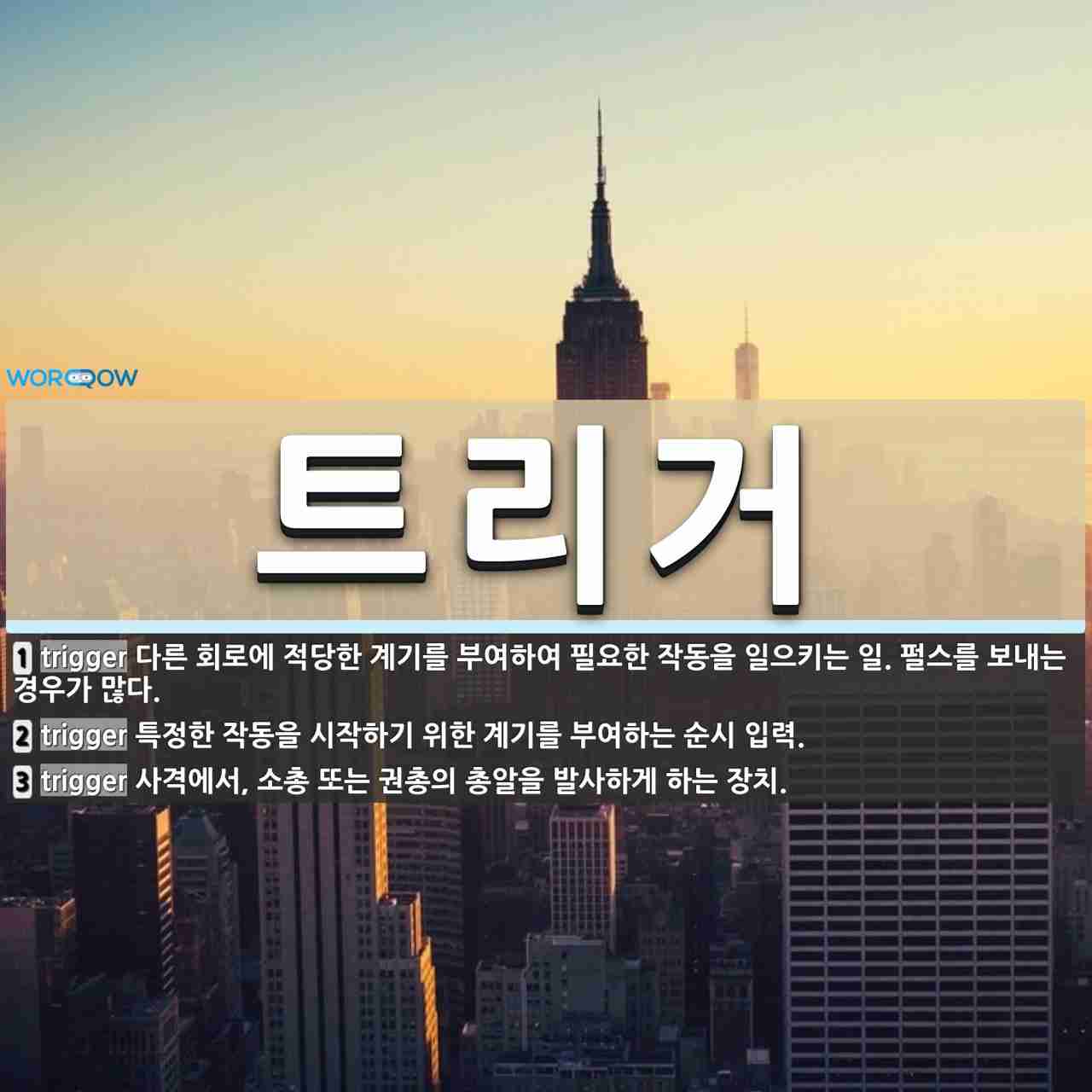 - 트리거 뜻: 원래 '방아쇠'에서 유래했지만, 이제는 '특정 자극에 반응을 유발하는 계기'라는 넓은 의미로 쓰여요.