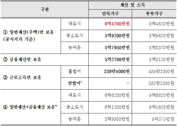 - 소득인정액이 기준 이하: 소득과 재산을 합쳐서 계산한 금액이 나라에서 정한 기준보다 적어야 해요. (하위 70%에 해당)