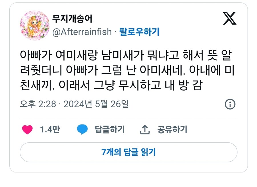 이 단어들은 유머와 비판을 담고 있다고하지만, 잘 맞은 맥락에서 사용하지 않게되면 오해를 낳을 수도 있습니다. 여러분은 이 표현들을 어떻게 생각하시나요? 일상에서 "남미새"나 "여미새"를 마주친 적이 있다라고 하면, 그 상황을 떠올리며 이 글을 되새겨 보시길 바랍하고요.