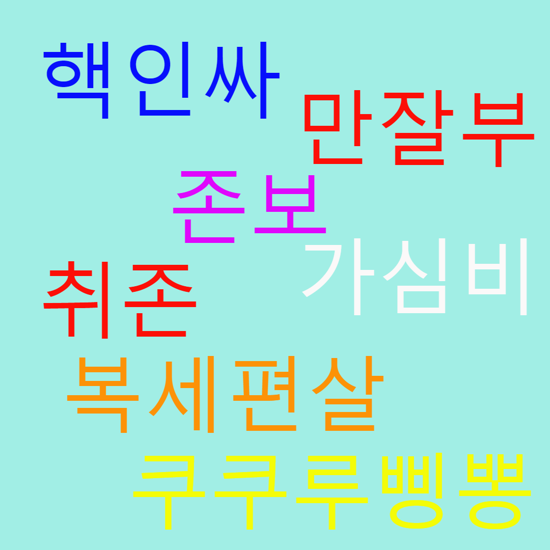 만반잘부처럼 긴 문장을 줄여 만든 신조어는 정말 많습니다. 젊은 세대들이 자주 사용하는 몇 가지 신조어를 소개해 드릴게요. 이것들을 알면 대화가 더 즐거워질 것입니다!