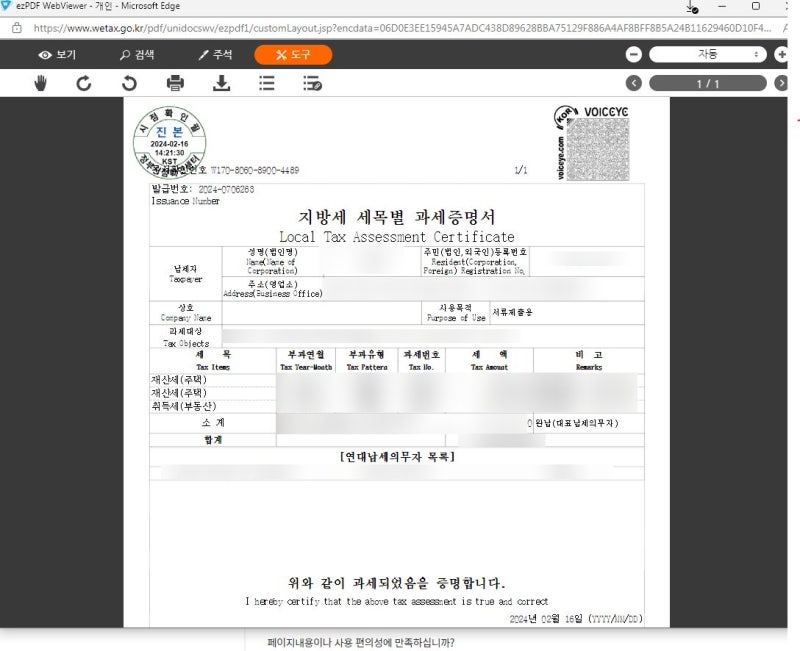 - [위택스] 법인 지방세 납부확인서 발급하기 - 위드택스